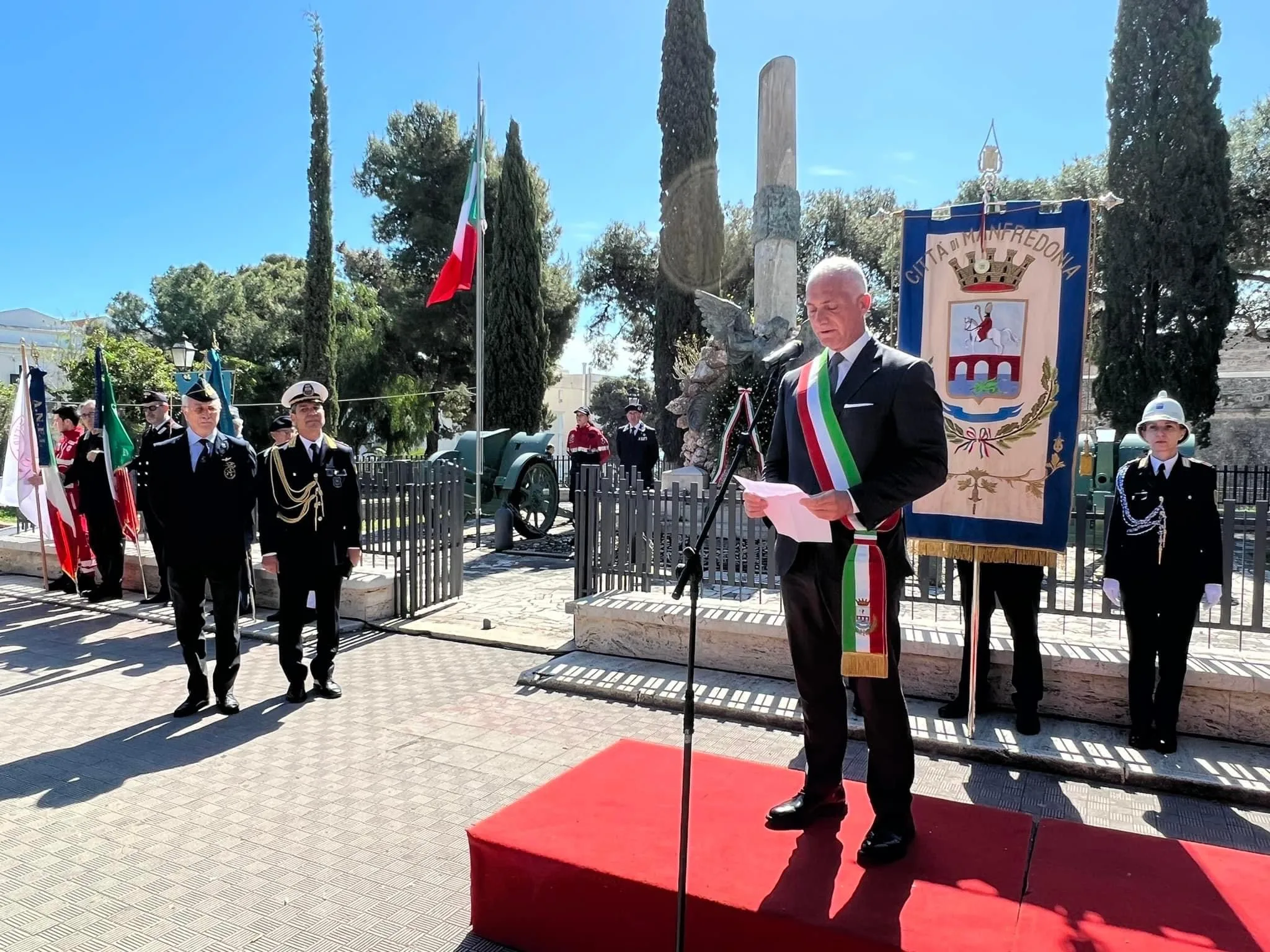 L’Amministrazione comunale di Manfredonia ha celebrato questa mattina il 78mo anniversario della Liberazione d’Italia con una solenne cerimonia alla quale hanno preso parte le Istituzioni civili e miliari e le Associazioni combattentistiche (presente anche la Banda Città di Manfredonia del Maestro Giovanni Esposto).