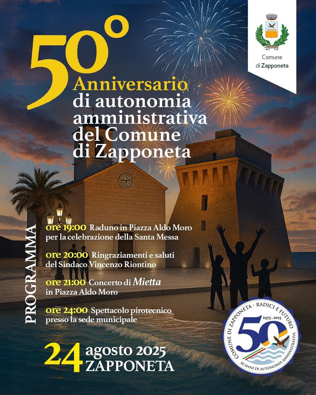 Domenica 24 agosto 2025 celebriamo insieme un traguardo storico: mezzo secolo di autonomia amministrativa, radici e futuro della nostra comunita.