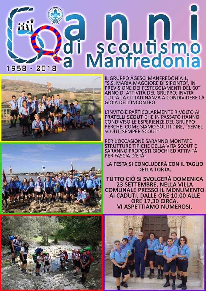 Il gruppo AGESCI Manfredonia 1, “S.S. Maria Maggiore di Siponto”, in previsione dei festeggiamenti del 60° anno di attività del gruppo, invita tutta la cittadinanza a condividere la gioia dell’incontro.