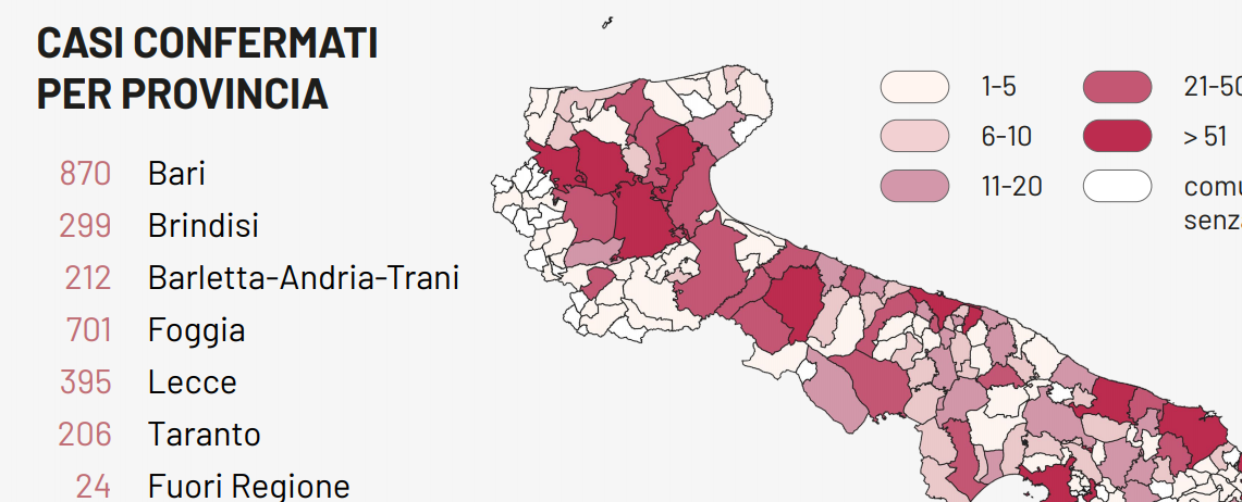 Il totale dei casi positivi Covid in Puglia è di 2.716 così divisi: