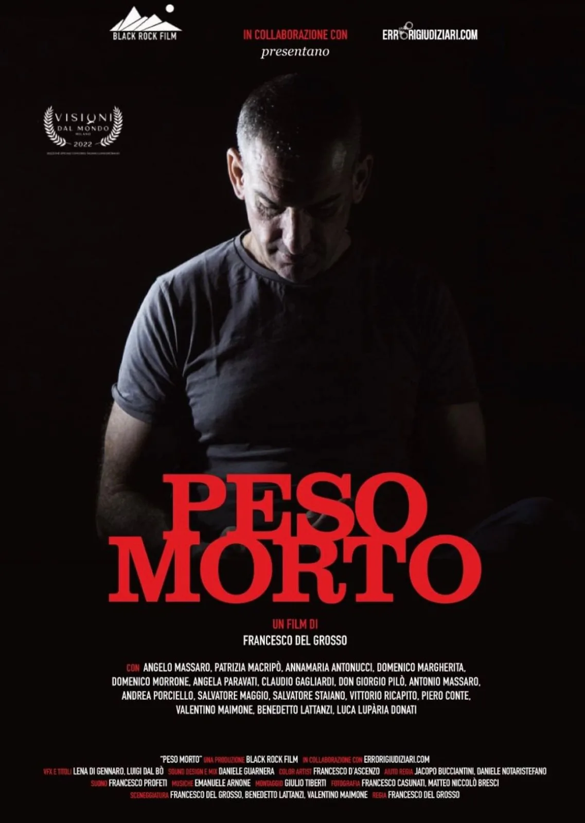 In Peso morto lo spettatore rivive l’incubo attraversato da Angelo Massaro attraverso un viaggio fisico ed emozionale nei luoghi che hanno fatto da cornice alla sua ingiusta detenzione, al fianco di figure chiave della sua incredibile vicenda: non solo familiari e amici, ma anche il cappellano del carcere, lo psicologo e la direttrice di uno degli istituti in cui è stato detenuto, compagni di cella, docenti universitari con cui sostenne gli esami della facoltà di giurisprudenza cui si era iscritto durante la detenzione e che lo chiamano oggi a portare la sua testimonianza agli studenti, a sostegno dell’opera di sensibilizzazione sul tema portata avanti con Errorigiudiziari.com.