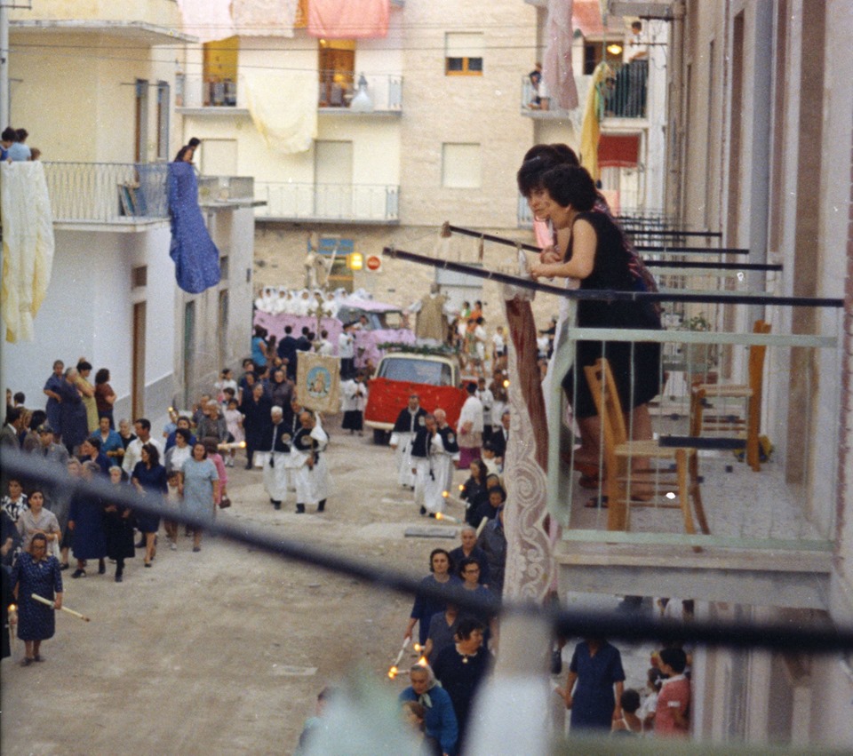 Una curiosità: fino al 1969 insieme alla Madonna di Siponto, durante la festa patronale, venivano portati in processione anche altri due santi patroni della città di Manfredonia, San Lorenzo Majorano e San Filippo Neri. Nelle foto che mi donò anni fa il fotografo Giuseppe Furio, prematuramente scomparso, la testimonianza di quell’ultima processione avvenuta esattamente 50 anni fa. E la vicinanza degli altri due santi patroni alla Madonna di Siponto si trova anche raffigurata in una rara litografia dell’800 (dove vi è anche San Michele Arcangelo la cui statua, che accompagnò in processione la Madonna fino al 1968, pare essere andata smarrita).