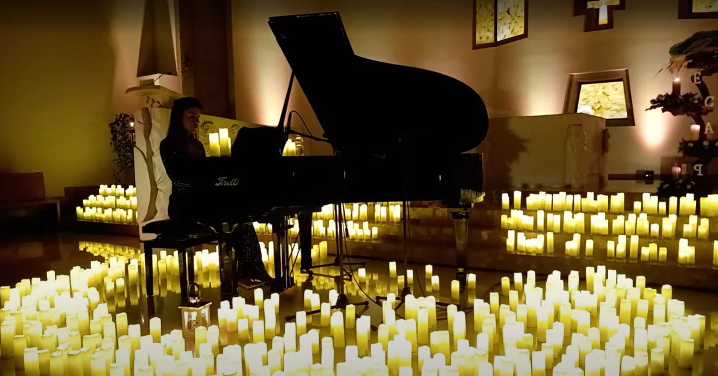 Accanto al pianoforte, la candela con la Luce di Betlemme, arrivata per una coincidenza poche ore prima del concerto, come spiegato da don Fabrizio, ha aggiunto un segno semplice e non programmato, rafforzando il senso di raccoglimento della serata a pochi giorni dal Natale.