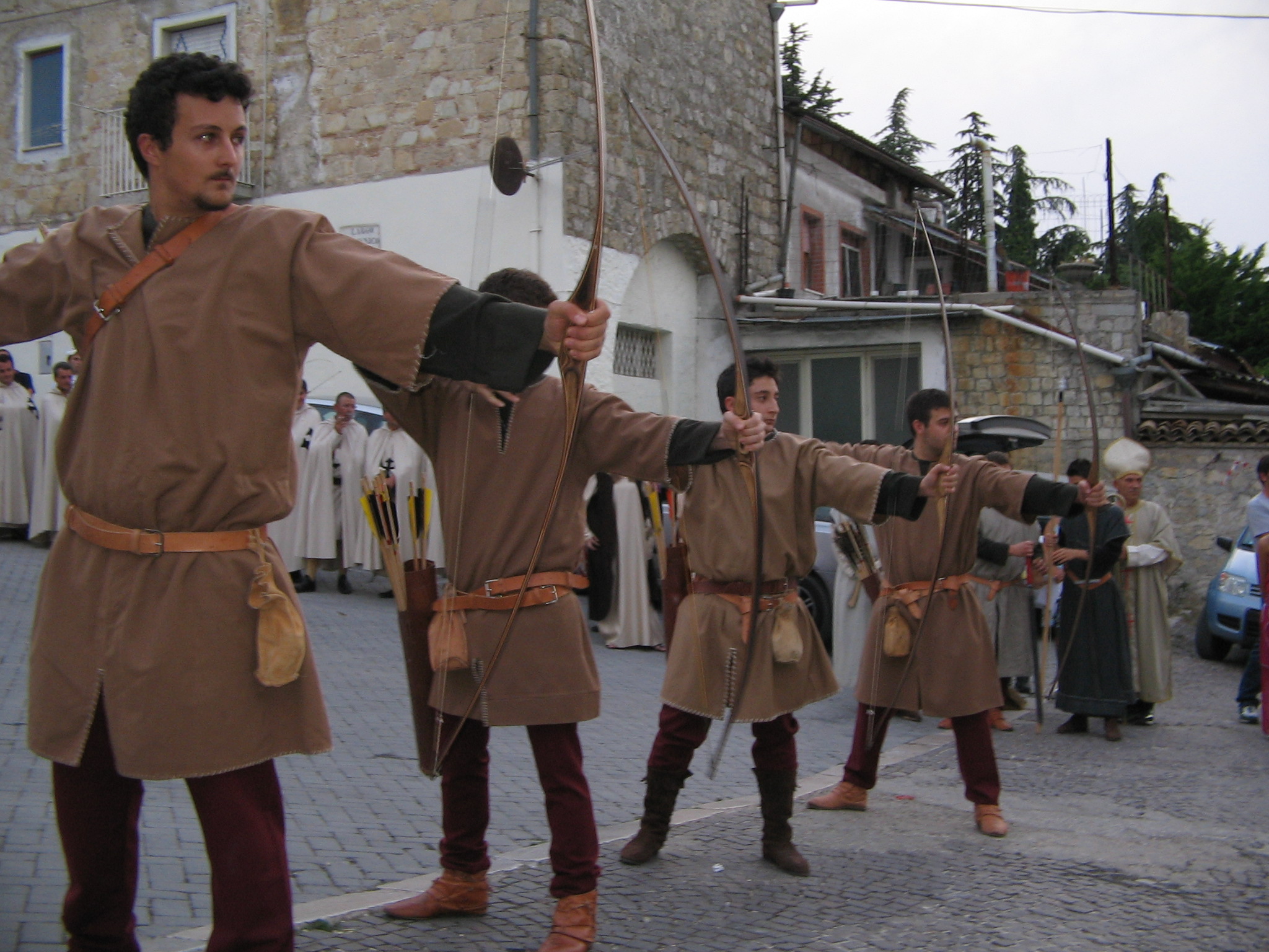 IL CORTEO. In corteo sfileranno il Gran Maestro, monaci, cavalieri e dame con costumi d’epoca. Il corteo storico rievocherà l’ingresso dell’ordine cavalleresco nel centro abitato di Orsara. Gran Maestro, Cavalieri, Chierici e Novizi arrivarono ad Orsara per prendere possesso dell’abbazia di Sant’Angelo e dei suoi estesi possedimenti, le “Laure” di chiara origine bizantina. Sarà rievocato anche il momento in cui l’infante Juan di Aragona divenne proprietario dell’Abbazia Sancti Angeli di Orsara di Puglia. Gli abiti indossati dai figuranti sono stati realizzati secondo quanto tramandano i documenti storici. Il corteo, che partirà da Largo San Michele, giungerà a Largo San Domenico per poi attraversare Corso della Vittoria, Piazza Municipio e altre vie del paese prima di tornare nei pressi dell’Abbazia Sant’Angelo. Il 17 agosto si ricorderà principalmente l’arrivo dei monaci guerrieri spagnoli, ma si racconterà anche di come nacque e prosperò per lungo tempo l’Abbazia di Orsara di Puglia, che fu sotto l’influenza religiosa e politica spagnola lungo le strade che portavano a Santiago de Compostela, Roma, Monte Sant’Angelo Gerusalemme.