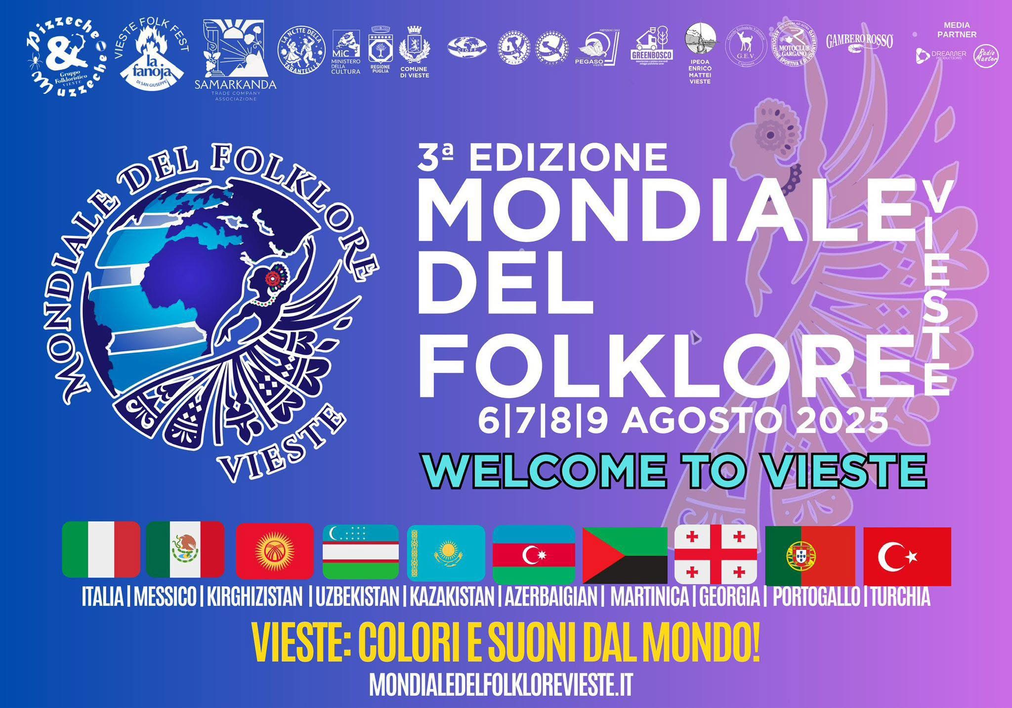 🌍 www.mondialedelfolklorevieste.it Dal 6 al 9 agosto 2025, Vieste è il cuore del mondo. Non mancare.