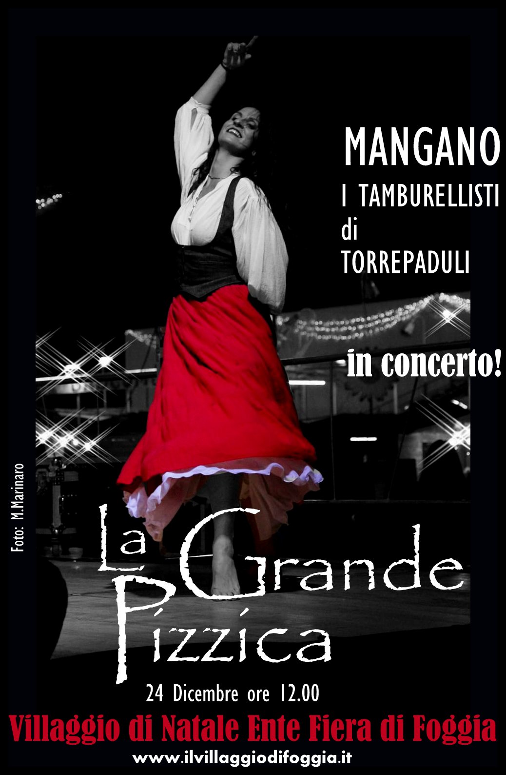 Al Villaggio di Natale gli auguri a ritmo di pizzica con Màngano e i Tamburellisti di Torrepaduli “ sarannolunedi 24 dicembre a Foggia alle ore 12.00 ( di mattina) nel Villaggio di Natale presso l’Ente Fiera  ,per un concerto dal titolo “ La Grande Pizzica” spettacolo organizzato dalla Blu Promotion di Foggia.