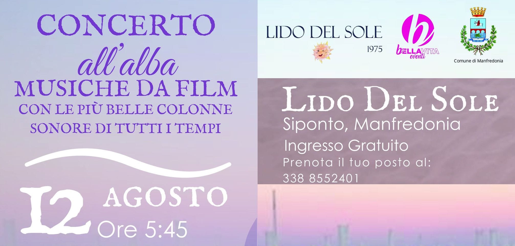 Alba in Musica al Lido del Sole di Siponto. L’appuntamento è fissato per lunedì 12 agosto alle 5,45 sulla spiaggia dorata del lido del Sole, uno degli stabilimenti balneari più in voga della costa garganica