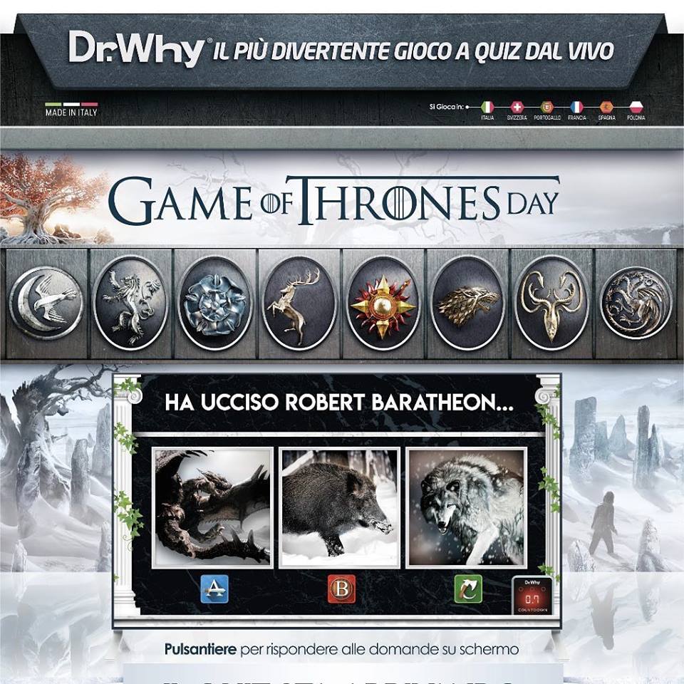 Venerdì 20 luglio Dr. Why Gargano presenta una serata speciale dedicata a tutti gli appassionati di Game of Thrones, che potranno sfidarsi e mettersi alla prova su quello che è, senza dubbio, uno dei più grandi successi degli ultimi anni!