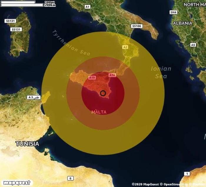 Il 22-12-2020 ore 21:27 è stata registrata una scossa di terremoto con magnitudo compresa tra 4.9 e 5.4 nella zona di Ragusa (RG).