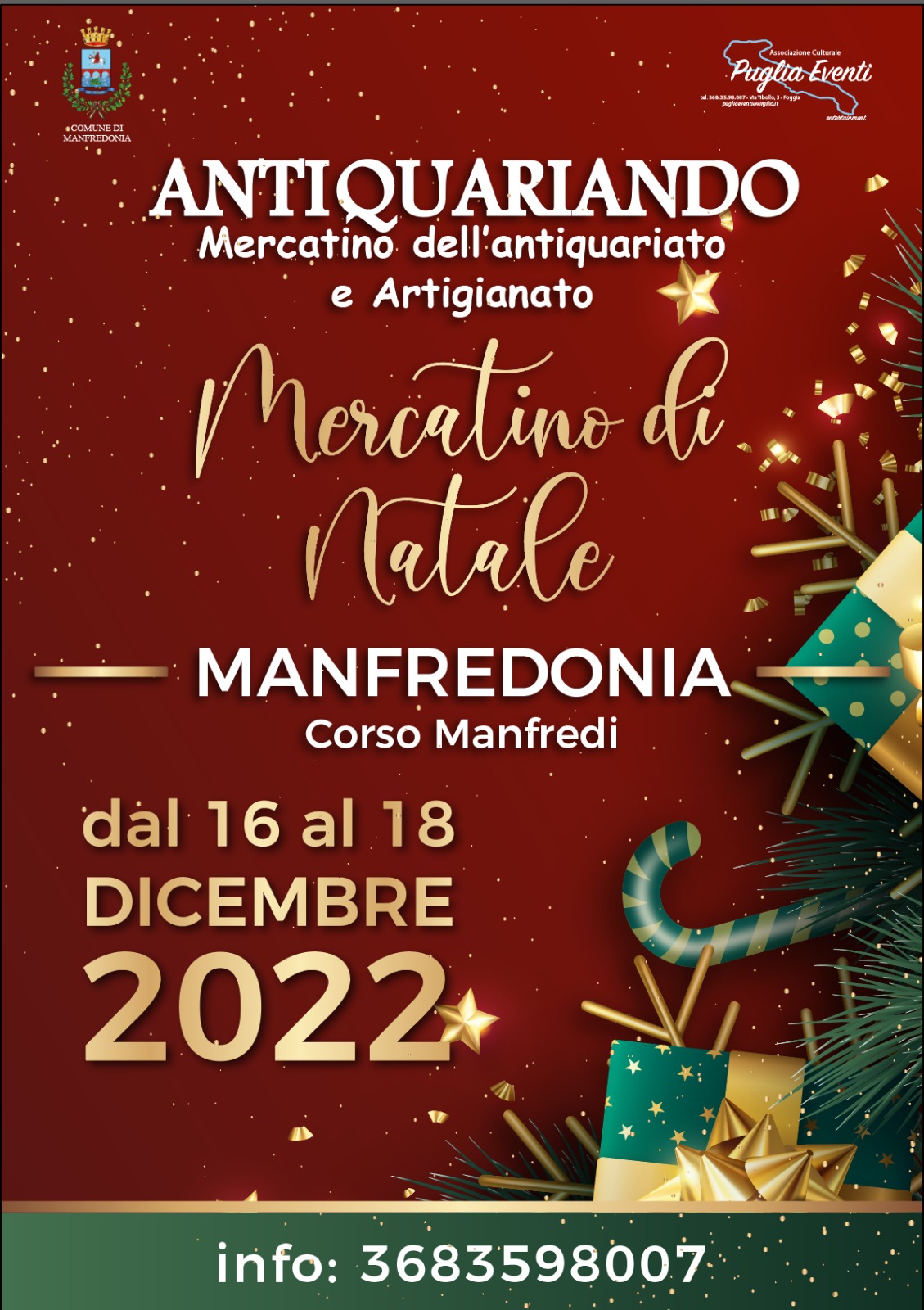 Amanti del vintage e curiosi, questo weekend non fatevi sfuggireAntiquariando – Il Mercatino di Natale dell’antiquariato e dell’artigianato, organizzato dall’Associazione “Puglia Eventi” con il patrocinio del Comune di Manfredonia, che vi permetterà di fare un vero e proprio salto indietro nel tempo.