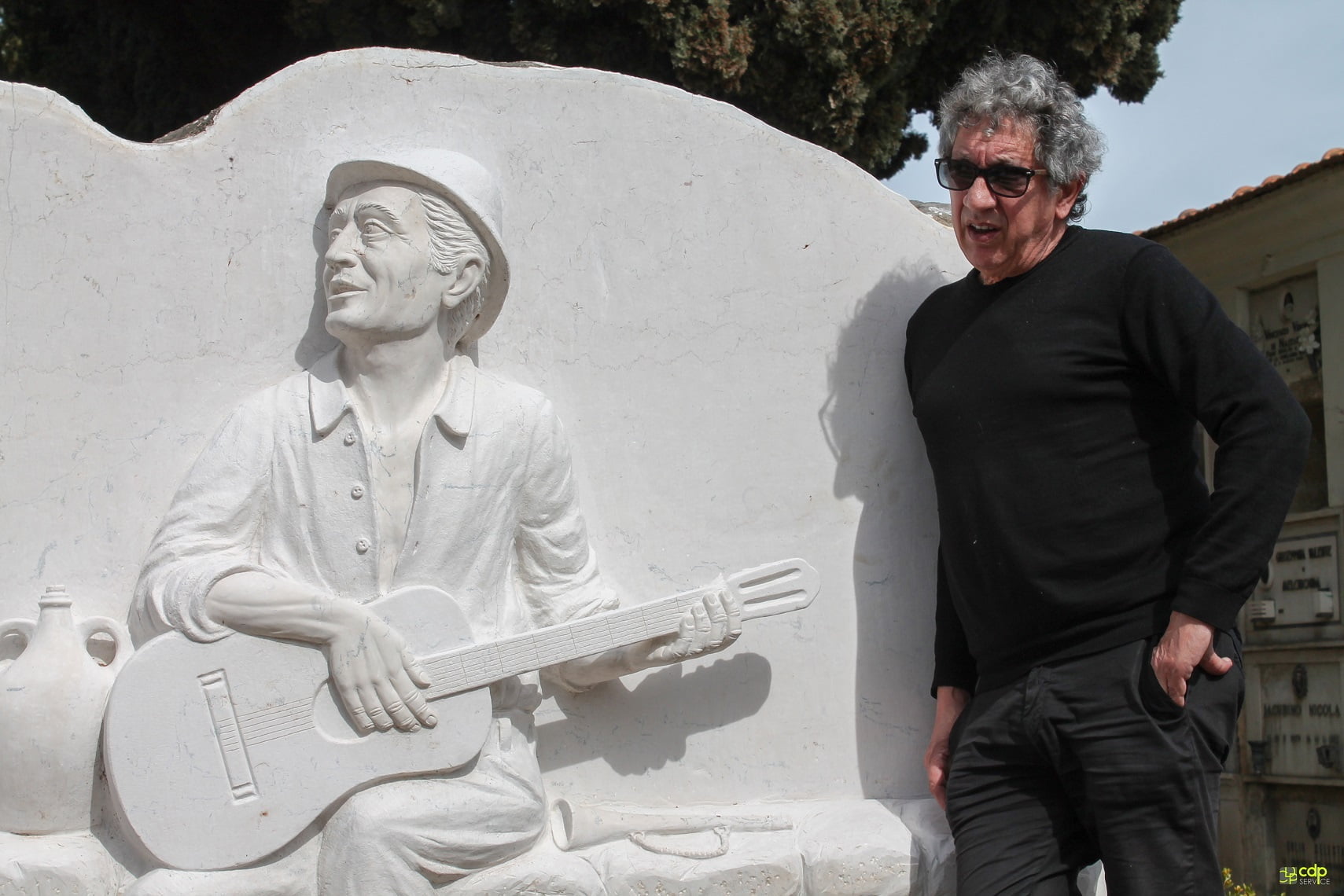 Una storia recente. Il monumento è stato inaugurato il 18 giugno scorso alla presenza di musicisti, amici, curiosi e delle figlie dell’artista scomparso. Si tratta di un’opera in pietra (blocco di “trovante” di oltre una tonnellata) disegnata dall’architetto Giovanni Carrozzo con altorilievo dell’artista locale Antonio Del Campo. Un sogno coltivato per anni dal nostro Centro Studi, a cui si è aggiunta anche l’Associazione “Pratatapumpa Folk”, idea poi fatta propria dal Comune di Apricena che ha messo a disposizione un’area del locale camposanto. Un progetto reso possibile dall’aiuto delle Cantine Le Grotte e dall’imprenditore Franco Dell’Erba.