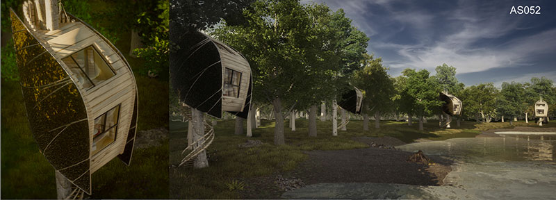 Numerose le proposte arrivate e dalle svariate soluzioni costruttive: c’è chi ha utilizzato il tronco dell’albero come fulcro del progetto, e chi, invece, ha scelto di lasciarsi cullare dal vento, in cellule sospese ai rami.