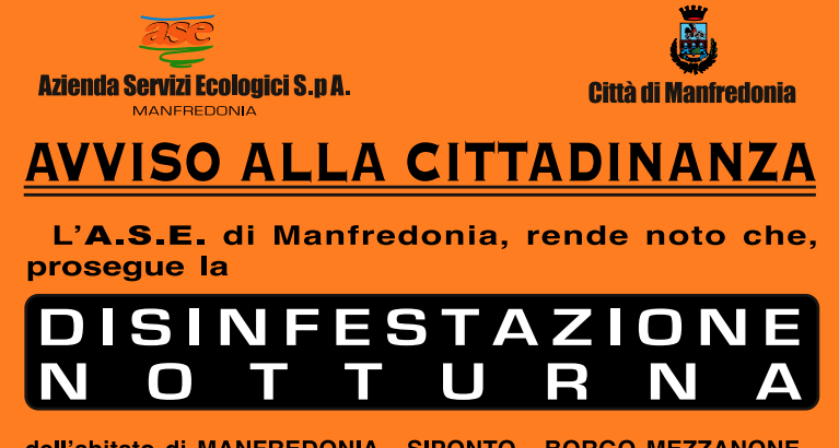 Ase: "Servizio di disinfestazione notturna". Ecco le date [embeddoc url="https://www.ilsipontino.net/wp-content/uploads/2020/07/Ase-20-luglio2020.pdf"]