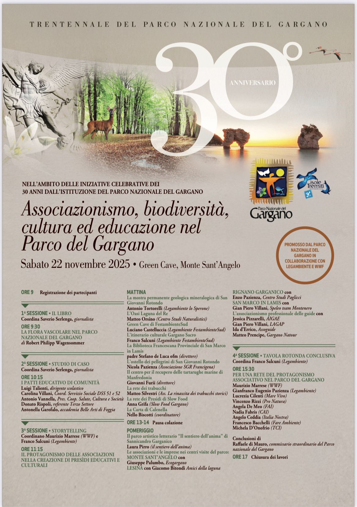 Sabato 22 novembre, a partire dalle 9.00, la Green Cave di Monte Sant’Angelo, nell’ambito delle iniziative dedicate al trentennale dell’istituzione dell’Ente Parco, ospiterà una grande occasione di riflessione e partecipazione costruita su idee, buone prassi e progettualità.