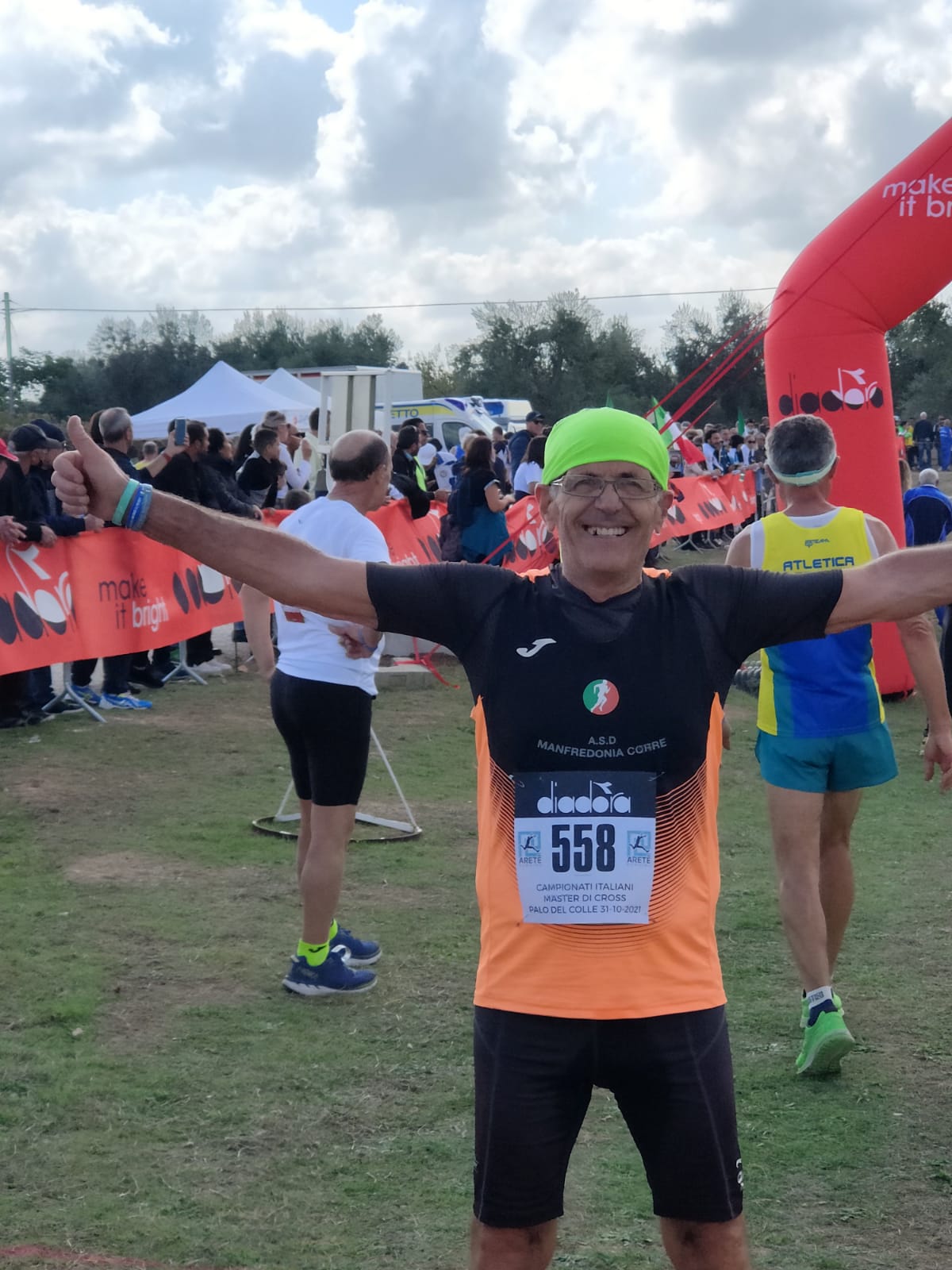 Domenica 31 di Ottobre si è tenuta la competizione dei Campionati Italiani Master di corsa Campestre individuale e di società – tenutasi in Palo del Colle . Presso la località di Masseria Vero – Contrada Monte paolo di Palombaio . Alla manifestazione campestre ha partecipato il nostro Sipontino Francesco VARRECCHIA , maratoneta e ultra maratoneta da tempo ,correndo in qualsiasi parte d’Italia da anni ,sempre con grandi risultati . Lui , Varrecchia, con la Società Manfredonia . Domenica si è cimentato in una 4 chilometri di corsa campestre sempre molto dura ,tra fango e fatica potente da parte dei muscoli e del corpo – con un grinta particolare del cuore ❤️ e l’anima sotto le nuvole del cielo ,dove lo spirito innalza la vita.