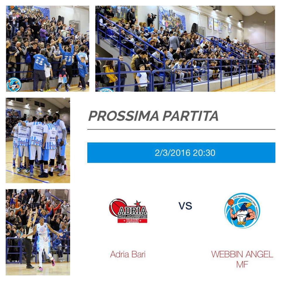 La Webbin Angel Manfredonia è attesa da una importantissima prova con l’Adria Bari, in un campo, quello del PalaBalestrazzi di Via Turati, storicamente ostico per gli uomini di coach Ciociola.