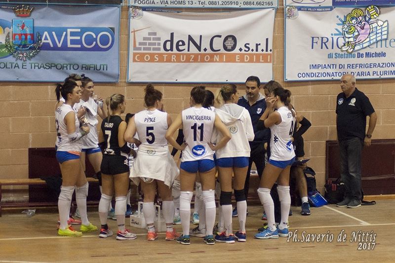 Coach Delli Carri ha schierato il consueto 6+1 con Valeria Pesce in cabina di regia, Stefania Liguori a completare la diagonale, Roberta Liguori e Lara Lugli ai lati, Chiara Vinciguerra e Diletta Sestini al centro, l’esordiente Danila Tauro come libero. A disposizione l’opposta Ilaria Barbaro, il palleggiatore Annalisa Mileno, la centrale Stefania Padula, tutte entrate a dare il proprio contributo nel corso della gara. Considerata l’assenza del libero titolare Alessia Mastrilli, la giovanissima foggiana Danila Tauro ha disputato l’incontro da titolare, denotando bravura e tenacia.