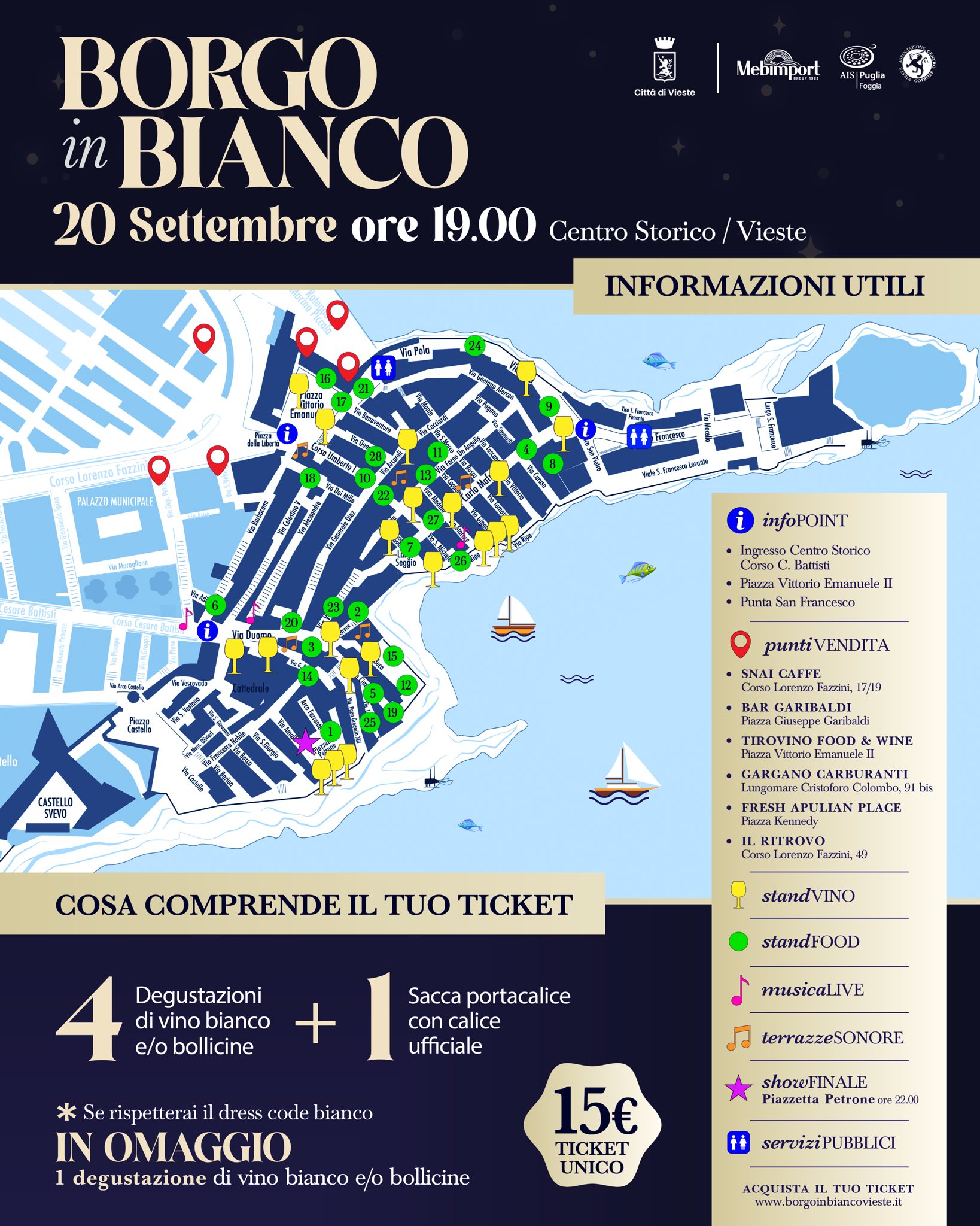 👉 Acquista il tuo ticket a 15€ su www.borgoinbiancovieste.it o nei punti vendita autorizzati.