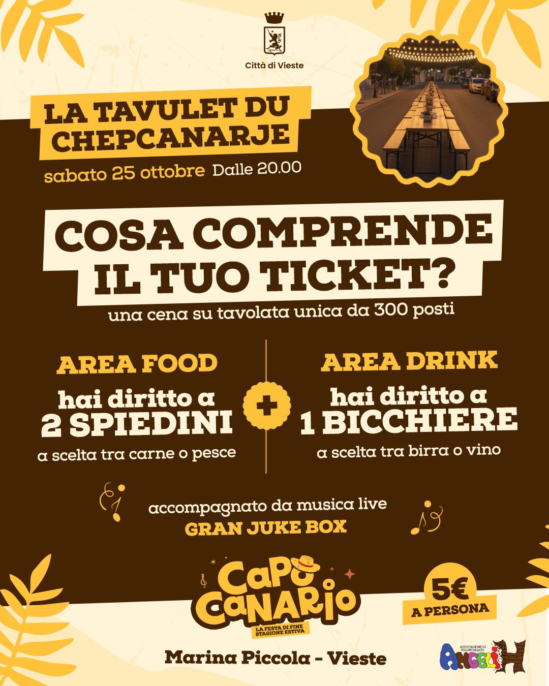 Cosa comprende IL TUO TICKET (5€) per sederti con noi a LA TAVULET DU CHEPCANARJE: