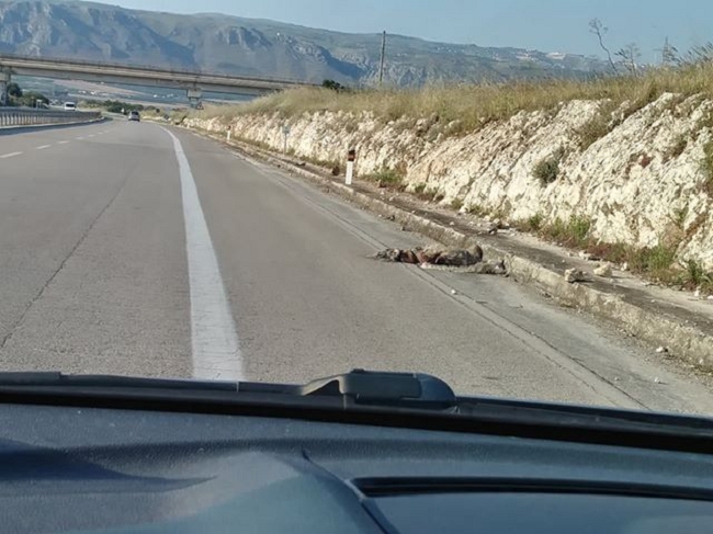 “Buonasera, c’è una carcassa di un animale (cane?) da più di una settimana sul ciglio della SS89 in direzione Mattinata nei pressi della Cava Foglia.