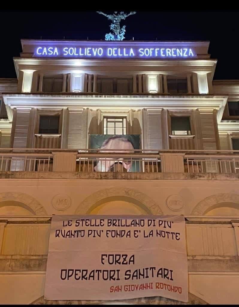 È lo striscione apparso questa sera ai piedi dell’ingresso monumentale della Casa Sollievo della Sofferenza approntato dai ragazzi del gruppo “Foggia Ultras” di San Giovanni Rotondo.