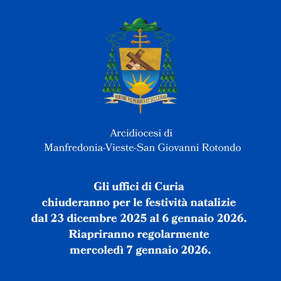 Gli uffici di Curia chiuderanno per le festività natalizie dal 23 dicembre 2025 al 6 gennaio 2026.
