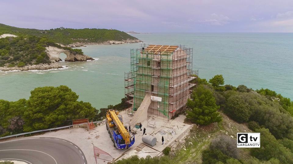 Si tratta, come si sa, di un importante lavoro di recupero della bellissima torre Cinquecentesca, posta sulla splendida baia di San Felice, alla quale fa da cornice il singolare “architiello”, ormai famoso in tutto il mondo e uno dei simboli del turismo di Vieste e del Gargano intero.