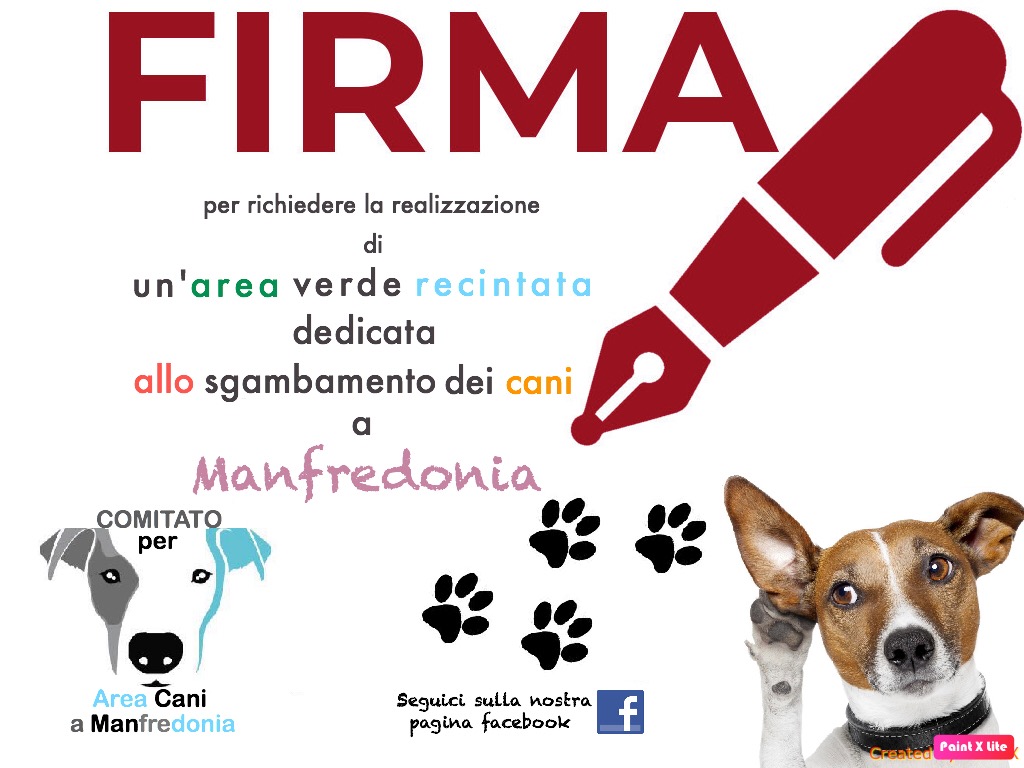 Gruppo Facebook Petizione Area Cani Manfredonia https://www.facebook.com/groups/691799974552362/