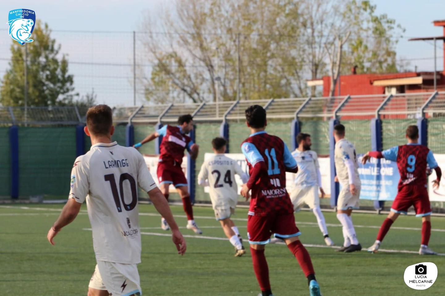 Il Manfredonia subisce non solo il colpo ma l’aggressività dell’Acerrana che crede fortemente nella vittoria e la ottiene con il Samb, lasciato colpevolmente libero nell’area piccola di svettare in alto e mettere alle spalle di Antonino regalando ai suoi la vittoria.