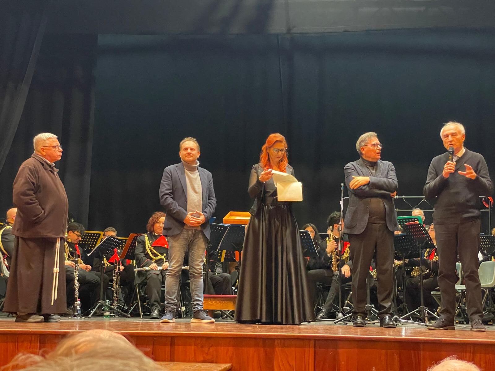 Protagonista assoluto il “Concerto Bandistico Città di Manfredonia” che, sotto la pregevole direzione del Maestro, prof. Giovanni Esposto, ha eseguito con competenza e maestria un ricco repertorio delle più belle e note arie tratte dal patrimonio lirico del belcanto e da quello di classici contemporanei. Al momento sinfonico si sono alternati, quasi in canone, le performance di assoli strumentali di clarinetto, flauto, sassofono e tromba, eseguiti da maestri di età diversa, evidenziando la realtà “democratica” del Concerto Bandistico, che accoglie individualità di età ed estrazione sociale varia, per fonderli in efficace armonia. Ben strutturate e perfettamente integrate le voci dei cantanti solisti, il tenore Andrea Nenna, il soprano Imma Riccardi e Valentina Civica che hanno eseguito con professionalità e potenza le melodie, spaziando dalla lirica d’opera, all’ambito del musical o dei classici contemporanei come Morricone e E. Page. A condurre la serata Stefania Fortunato che, con elegante sagacia, ha introdotto le varie fasi del concerto.