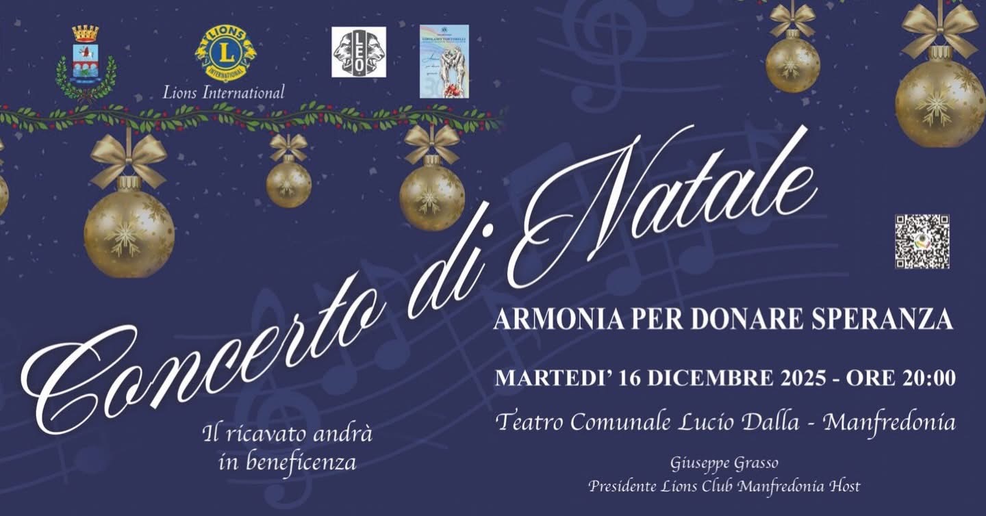 Il concerto “Armonia per donare” nasce grazie alla volontà dei Lions di Manfredonia Lions Club Manfredonia, che hanno promosso questa serata per sostenere la comunità e portare aiuto concreto a chi ne ha più bisogno.