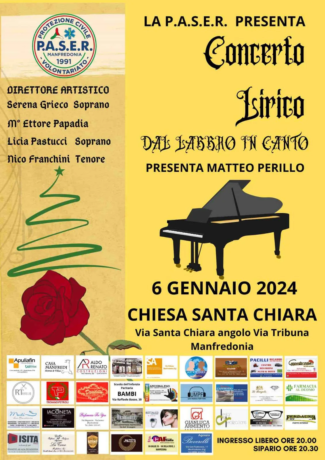 Oggi presso la Chiesa Santa Chiara la P.A.S.E.R MANFREDONIA presenta il Concerto Lirico “DAL LABBRO IN CANTO” .