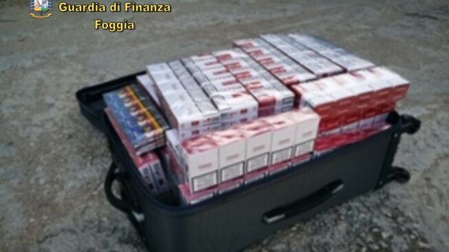 I finanzieri della Compagnia di Manfredonia, durante il pattugliamento delle principali arterie stradali del capoluogo dauno, hanno scorto due persone intente a caricare alcune grosse valigie su due autovetture. Insospettiti dai movimenti dei soggetti, si sono fermati per controllare i mezzi, a bordo dei quali hanno scoperto alcuni trolley, borse e zaini colme di stecche di sigarette prive del marchio dei monopoli di stato di note marche, quali Chesterfield, Marlboro Rosse, Merit. I controlli sono stati poi estesi presso un autoparco della periferia di Foggia dove uno dei soggetti fermati aveva in uso un box. Al suo interno sono stati scoperti numerosi cartoni contenenti sigarette di contrabbando, Philiphs Morris, Pall Mall e Ashima, prive della fascetta dei monopoli di stato. Al termine delle perquisizioni sono stati sequestrati complessivamente 2100 pacchetti di sigarette.