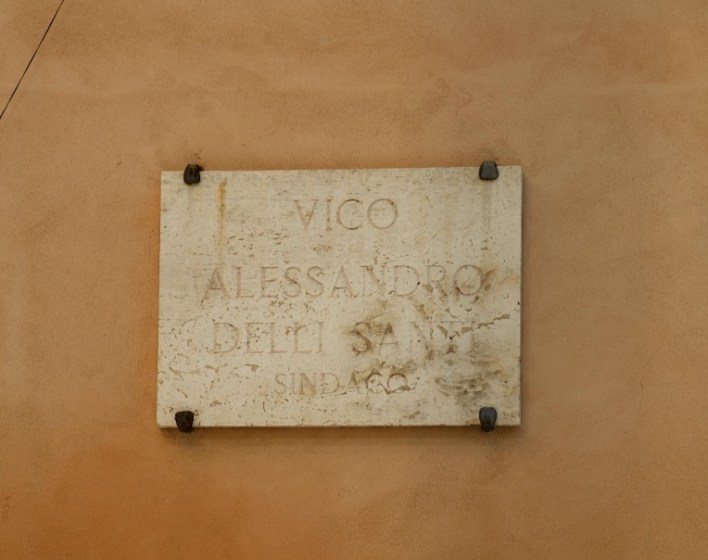 Da tale iscrizione, pertanto, si estrapolano notizie interessanti. Sono state costruite due nuove cisterne, in aggiunta a quelle già presenti, grazie a somme di denaro eccedente che fa presumere la buona salute delle casse comunali. Un’altra informazione è quella relativa al nome del sindaco che ha voluto la costruzione di queste piscine, ovvero Alessandro Delli Santi, a capo dell’amministrazione comunale per due anni consecutivi, ovvero dal 1749 al 1751[21]. Proprio il vicolo adiacente la chiesa di Santa Maria delle Grazie è intitolato a questa personalità. Appare opportuno annotare, per completezza, che tra l’ultima amministrazione del Delli Santi e quella del Valente (settembre 1753 – agosto 1754), si inserisce il sindacato di Giuseppe Cibelli[22].