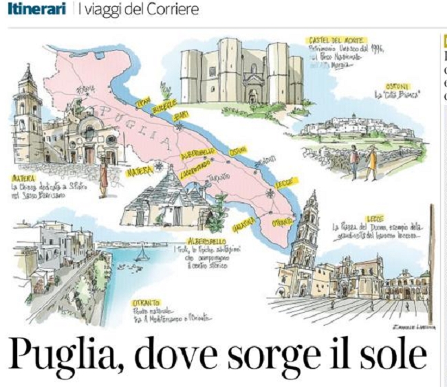L’articolo con la relativa cartina dell’edizione giornaliera del Corriere parla chiaro: la provincia di Foggia fa parte della Puglia solo geograficamente, ma è fuori dalle attrazioni culturali e gastronomiche della Regione.