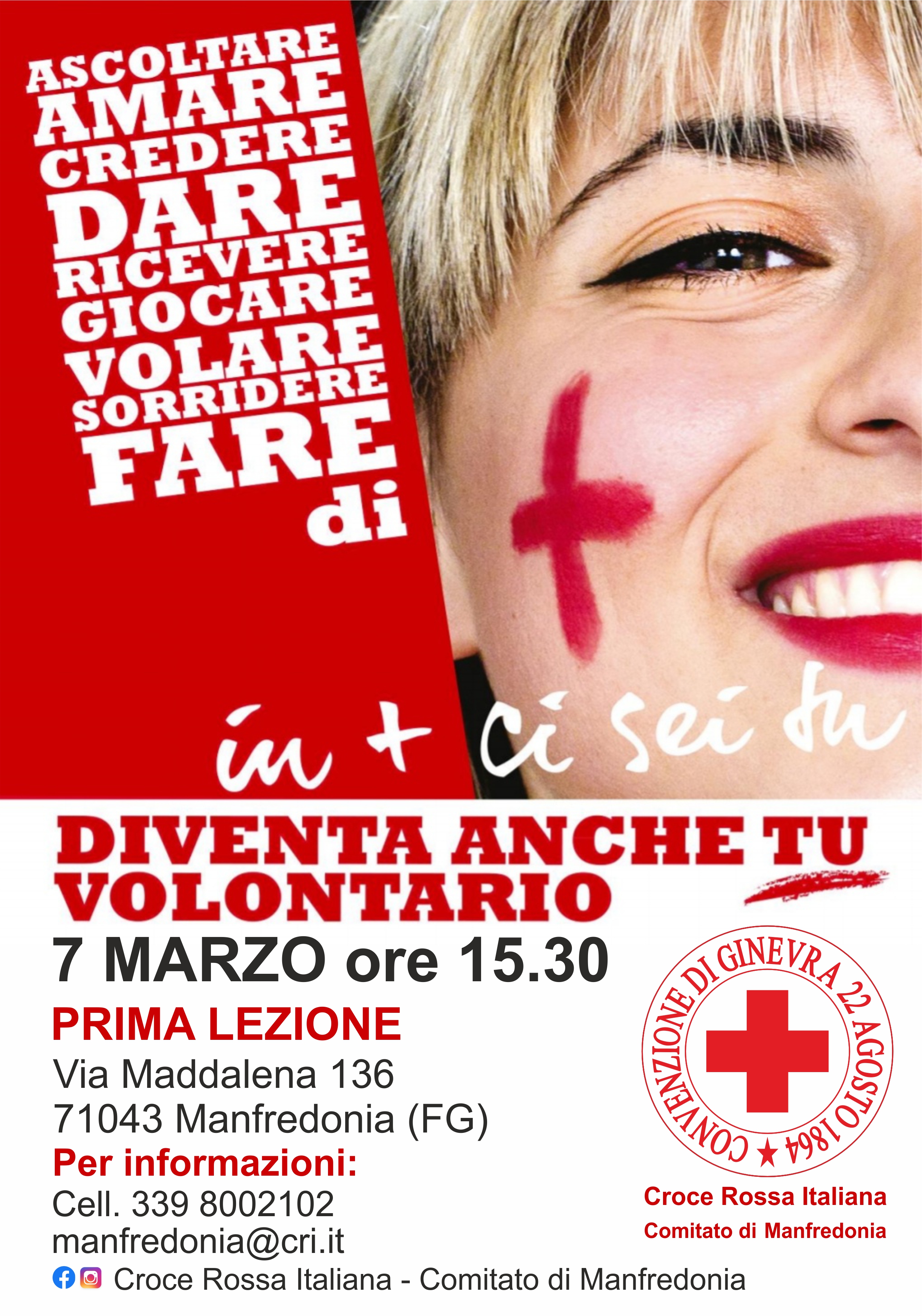 Il Comitato di Manfredonia della Croce Rossa Italiana è lieto d’informare la cittadinanza dell’ attivazione del nuovo corso di formazione per volontari della
