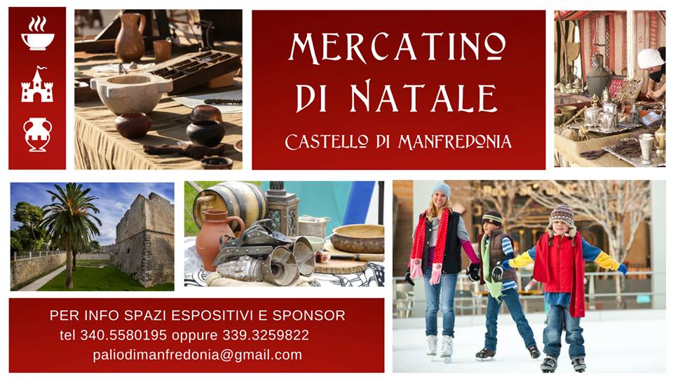 Nello scenario del Centro Storico di Manfredonia, i visitatori potranno, dunque, passeggiare tra le casette in legno alla scoperta di oggetti di artigianato, di tipicità gastronomiche locali e addobbi natalizi, ammirare artisti dell’oggettistica medievale, artigiani di armi e armature storiche, tra figuranti, cortei e rievocazioni della vita nell’età di Mezzo. Ci sarà anche la presenza di espositori provenienti da altre regioni del Sud e non mancheranno i momenti non solo di animazione e di divertimento per grandi e piccini (oltre ad inedite visite guidate a tema al patrimonio storico-culturale della città), ma spazio alla solidarietà a sostegno dei meno fortunati, come le popolazioni del Centro Italia recentemente colpite dal terremoto grazie alla collaborazione con la ProLoco Manfredonia.