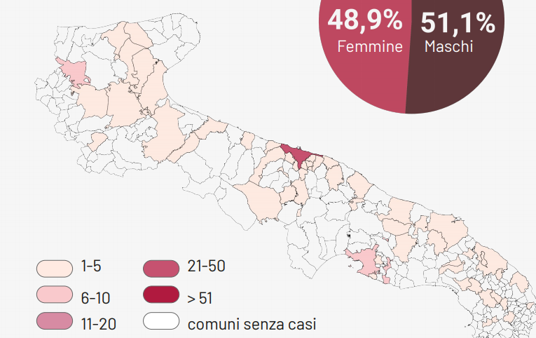 Il totale dei casi positivi Covid in Puglia è di 4.531, così suddivisi: