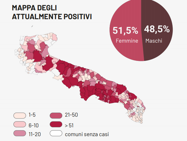 Il totale dei casi positivi Covid in Puglia è di 252.651 così suddivisi: