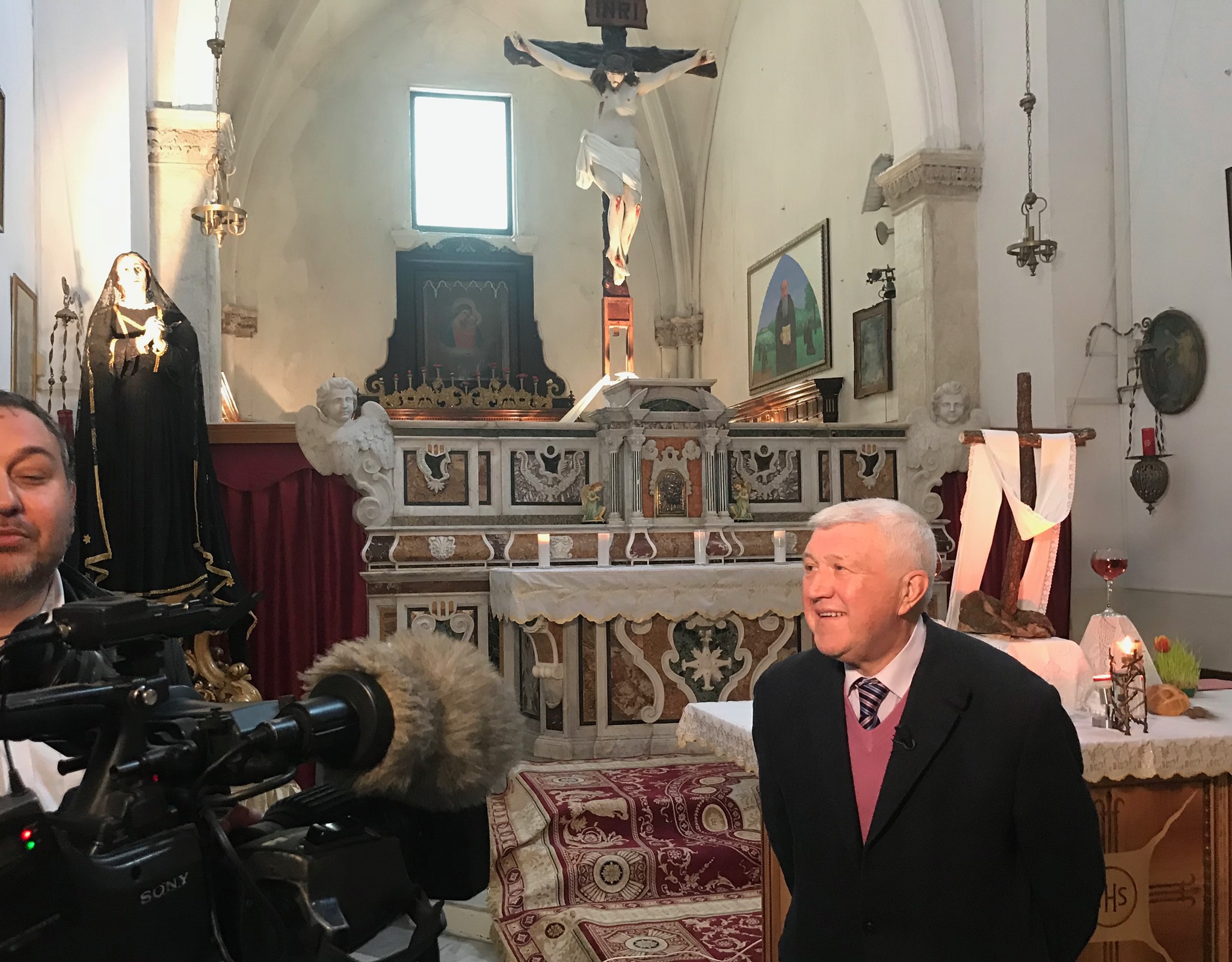 Con il tuo sorriso, sempre pronto e disponibile ad offrire il tuo contributo, proprio come in questa foto, mentre, insieme, promuovevamo i riti della Settimana Santa.