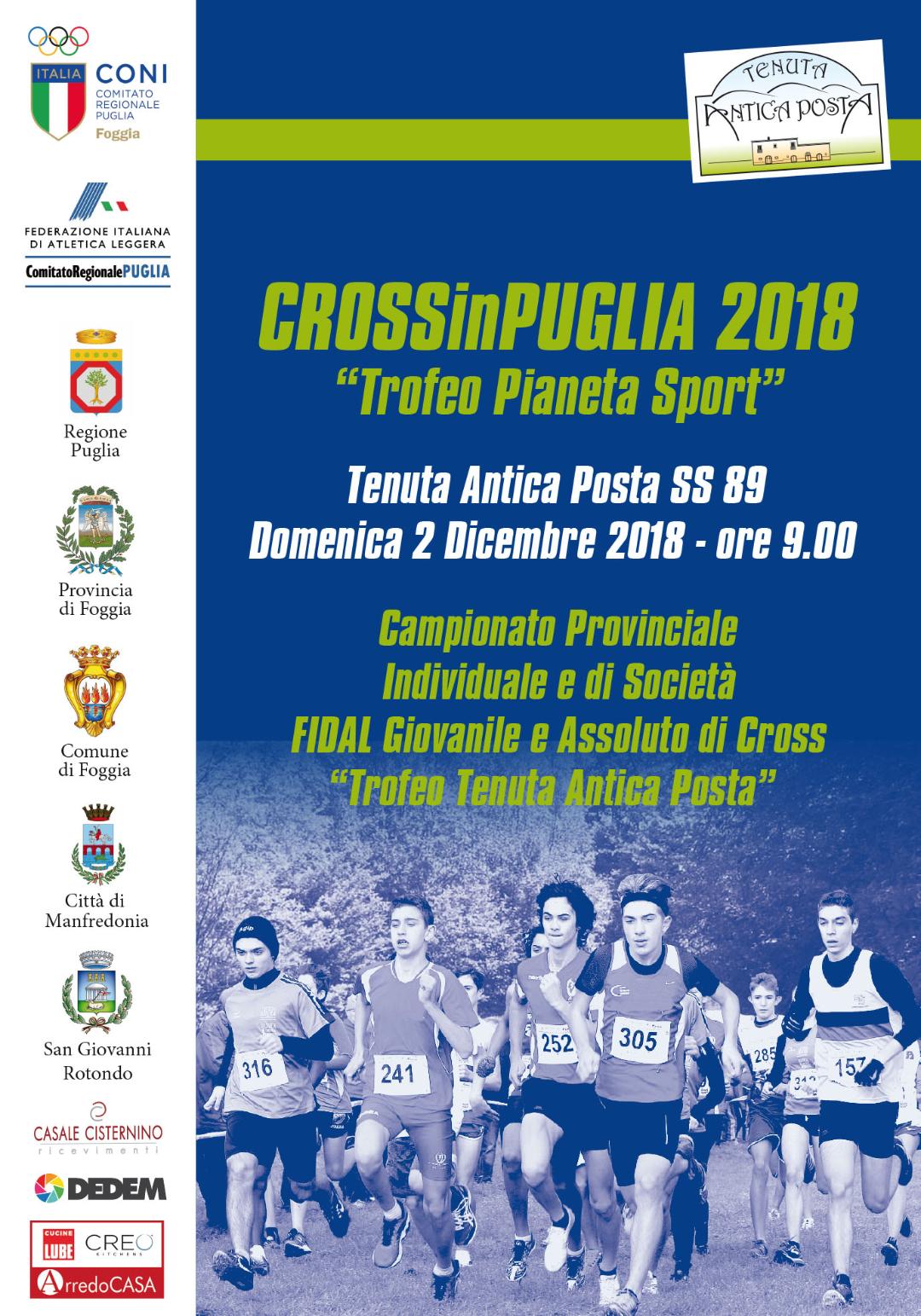 PARTECIPAZIONE CROSSinPUGLIA 5^ prova – Antica Posta : la manifestazione è riservata a tutti gli atleti tesserati per società pugliese iscritte alla FIDAL delle categorie maschili e femminili Senior, Promesse, Junior, Allievi/e, Cadetti/e, Ragazzi/e ed Esordienti A/B/C in regola con il tessera- mento per l’anno 2018;