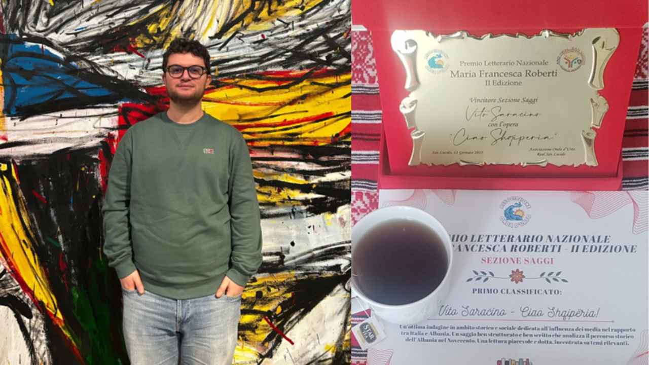 Quest’estate invece a San Vito Chietino, incantevole borgo della Costiera dei Trabucchi nel vicino Abruzzo, riceveva il “Premio Vito Moretti” per la sua tesi di dottorato “Ciao Shqiperia! Il ruolo storico-educativo e culturale dei media italiani in Albania nell’età contemporanea”, (parte del lavoro diventerà questo libro pubblicato da Besa Muci Editore https://www.besamucieditore.it/libro/ciao-shqiperia-il-secolo-dei-media-nei-rapporti-culturali-italo-albanesi/). Si tratta della punta di un iceberg di un complesso percorso di ricerca svolto negli ultimi 7 anni dal nostro concittadino con lo sguardo rivolto ad est, come scopriremo nel nostro podcast.