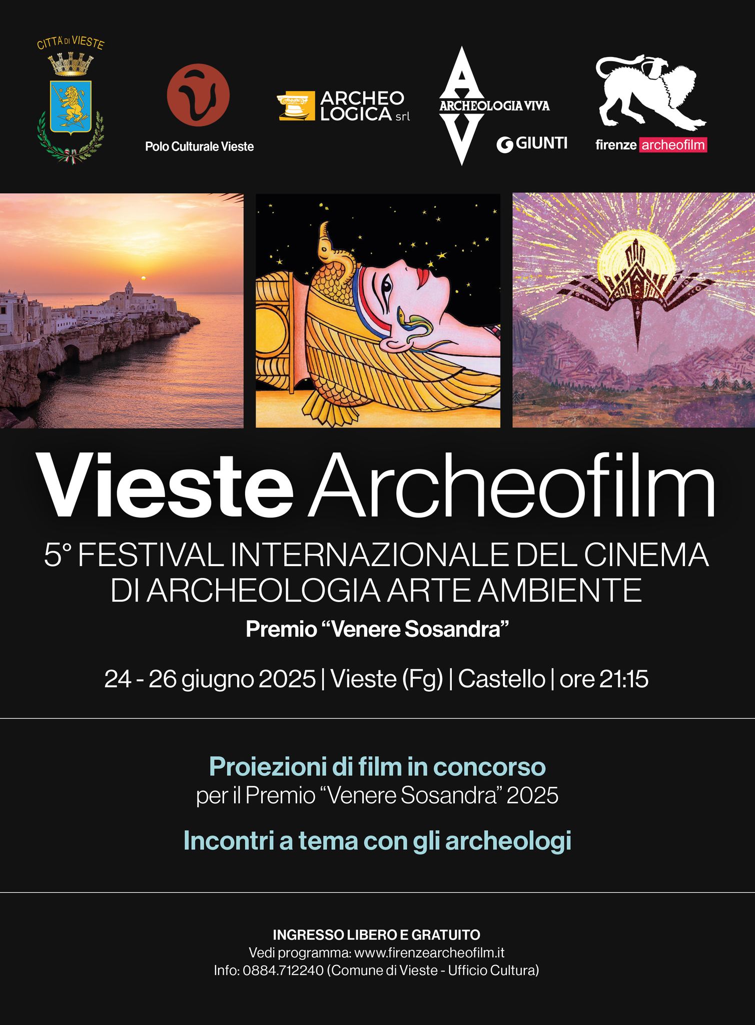 Dal 24 al 26 giugno 2025 al Castello Svevo di Vieste torna uno degli appuntamenti più attesi dell’estate garganica: “Vieste Archeofilm” – Festival Internazionale del Cinema di Archeologia Arte e Ambiente organizzato dal Comune di Vieste, in collaborazione con Archeologia Viva (Giunti Editore) e Firenze Archeofilm (ingresso libero e gratuito).