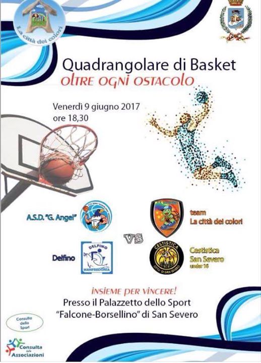 E’arrivato il grande giorno in cui, grazie alla passione e all’operato di coach Gianpio Ciociola, una vita dedicata al basket, si realizza e concretizza ancora una volta quel bel rapporto che collega da anni l’A.S.D. per Disabili Delfino alla cestistica A.S.D. Basket “Giuseppe Angel” sulla via dell’integrazione e della condivisione. Di scena, questo pomeriggio a San Severo, presso il palasport dedicato agli eroici giudici Falcone Borsellino sono i giovani cestisti della Angel e gli atleti speciali della Delfino, che partecipano, in contemporanea ad un quadrangolare dal titolo più che significativo: “Oltre ogni Ostacolo”ovvero un motivo per andare oltre le differenze, oltre le soggezioni, oltre le particolarità; un titolo integrativo, coinvolgente, in cui il significato stesso dei termini inserimento e partecipazione vengono coniati nel loro assunto più profondo. Con Gianpio Ciociola ci sono i giovani atleti delle rappresentative giovanili, ovvero la squadra della Basket Angel under 16 e, assieme a loro, come fossero unica squadra i cestisti della Delfino; Cosimo, Antonio, Lorenzo, Michele, Giuseppe, ragazzi che sanno realizzare e concretizzare gioco e tecnica del basket e che sono stati capaci di vincere negli ultimi anni un titolo nazionale Fisdir e la medaglia d’oro nei Play the Games Special Olympics, corrispondente ad un ulteriore primato.