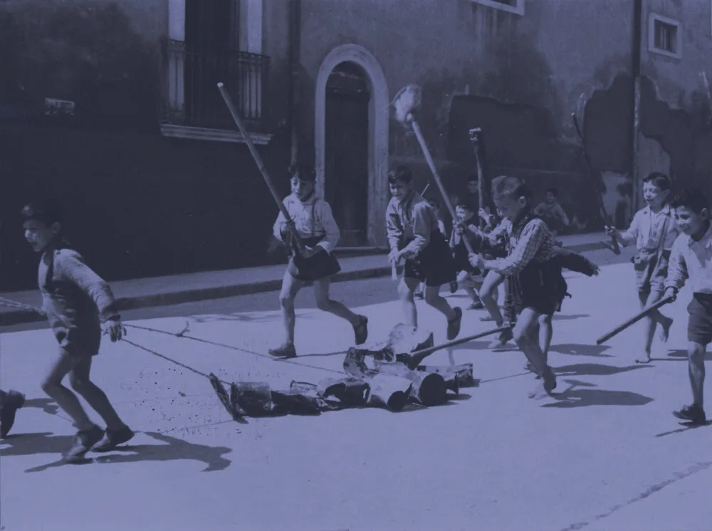 Tanti i ragazzini in fila con un bastone di legno, si doveva colpire ripetutamente le stagnole quasi a ritmo incessante, e ripetendo una fatidica frase contemporaneamente nella corsa continua tipo un circuito da ripetere più volte come se fosse una pista di atletica,ci si gridava così: – Cacciet u diavl – Cacciet u diavl, za za za, cacciet u diavl ,za za za . Tutto sempre di continuo e di corsa pura, senza un attimo di tregua né di respiro.
