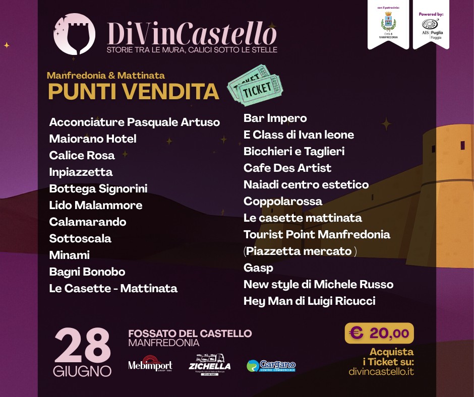 DivinCastello a Manfredonia, ecco dove comprare gli ultimi biglietti rimasti