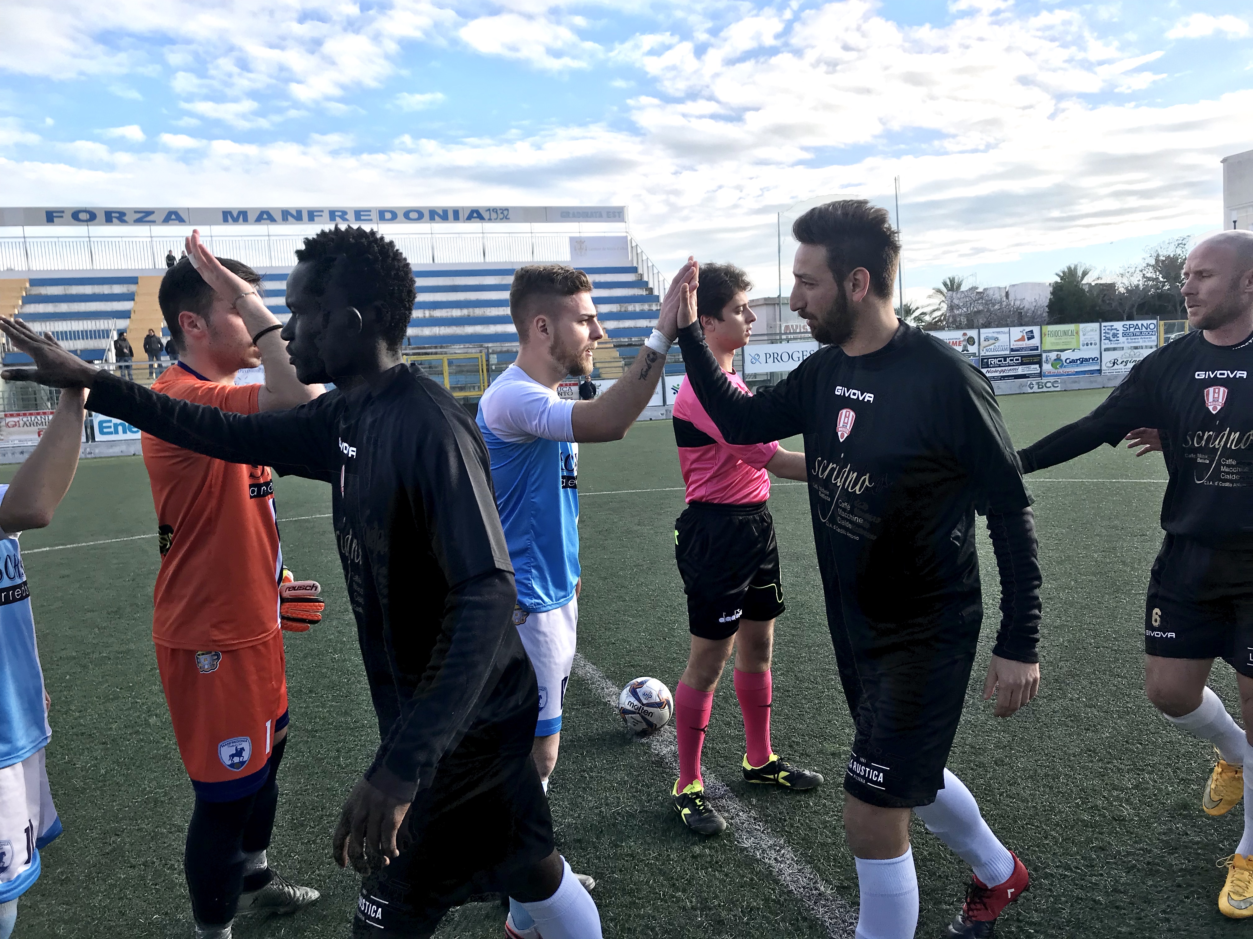 MANFREDONIA FOOTBALL CLUB: Ciuffreda, Sciannandrone, Santoro (41’st Paglione G.); Castigliego, Lauriola Ma., De Filippo; Petrozzi (10’st Spagnuolo), Simone, Trotta, Lauriola Mi., Lomuscio (17’st Accarrino). A disp. Valente, Gatta, Palumbo, Di Giuseppe. All. Luigi Renis