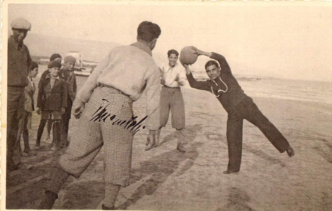 ” Manfredonia” – “Spiaggia Diomede”.La foto ritrae e mette in evidenza alcuni calciatori sipontini – con alcuni piccoli tifosi . ( 1939 ) ovviamente il più famoso era Mondelli … Questa un’epoca davvero commovente ,piena di sentimento e di attaccamento al sogno di migliorare la nostra terra ,che sapeva di pulito e di speranza, dove il cuore del paese era l’unico pane, per il paese che sognava un vento nuovo e con gli occhi nella mano.