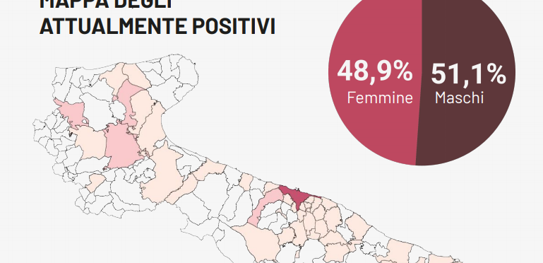 Il totale dei casi positivi Covid in Puglia è di 4.529, così suddivisi: