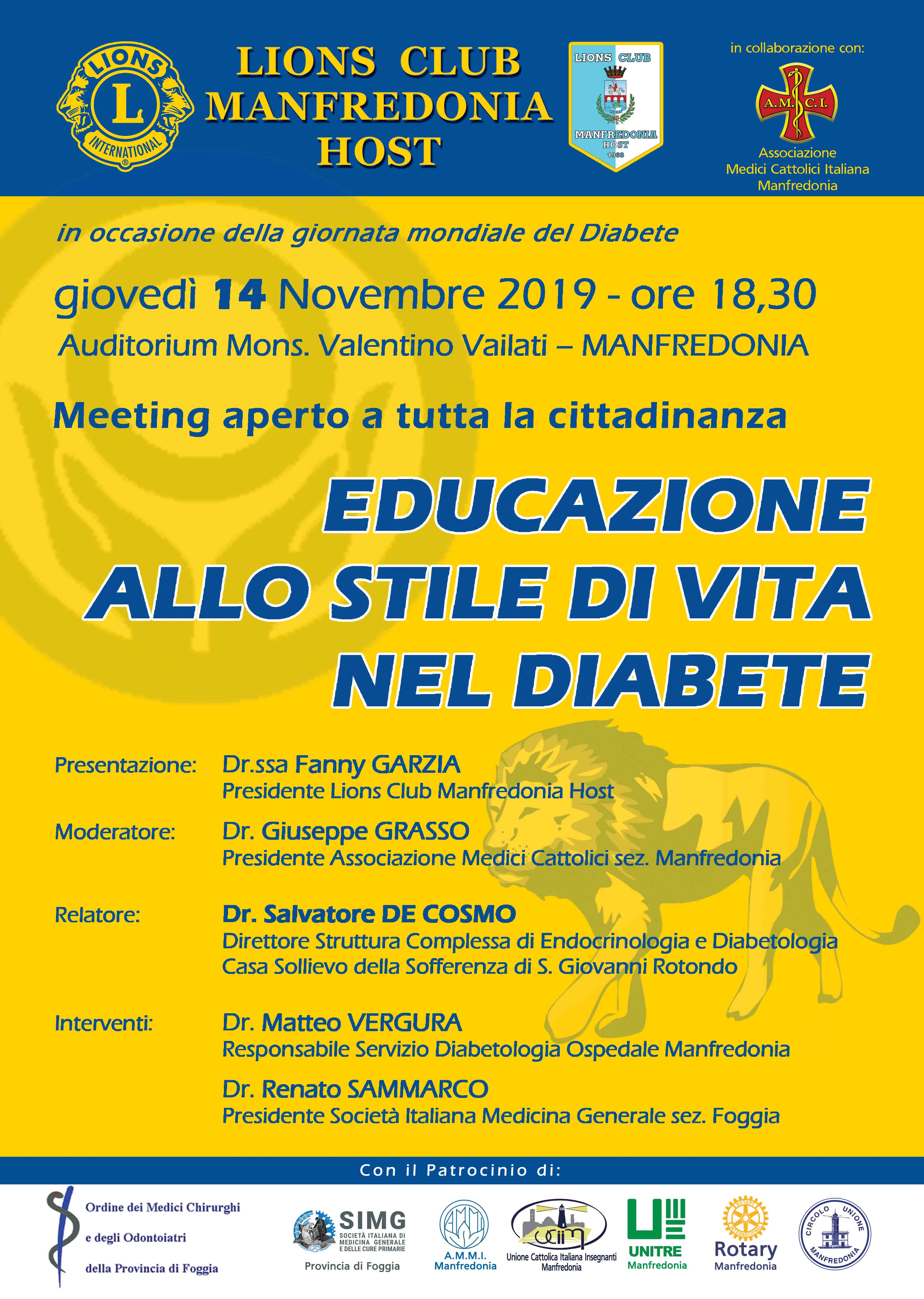 In occasione della giornata mondiale del diabete, giovedì 14 novembre 2019, alle ore 18,30 Meeting aperto a tutta la cittadinanza, presso l’Auditorium Mons. V. Vailati su un tema di grandissimo impatto sociale.